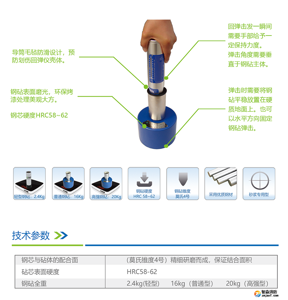 本標準校驗鋼砧適用于普通中型回彈儀(含數字回彈儀)、砂漿回彈儀、測磚回彈儀和高強型回彈儀,是進行回彈儀校驗的必備檢驗工具,種類分為混凝土型、砂漿專用型、高強專用型等。表面環保烤漆處理美觀大方,導筒采用注塑件防劃傷設計,各部件由優質鋼及優質工具鋼制成,經久耐用,穩定可靠。