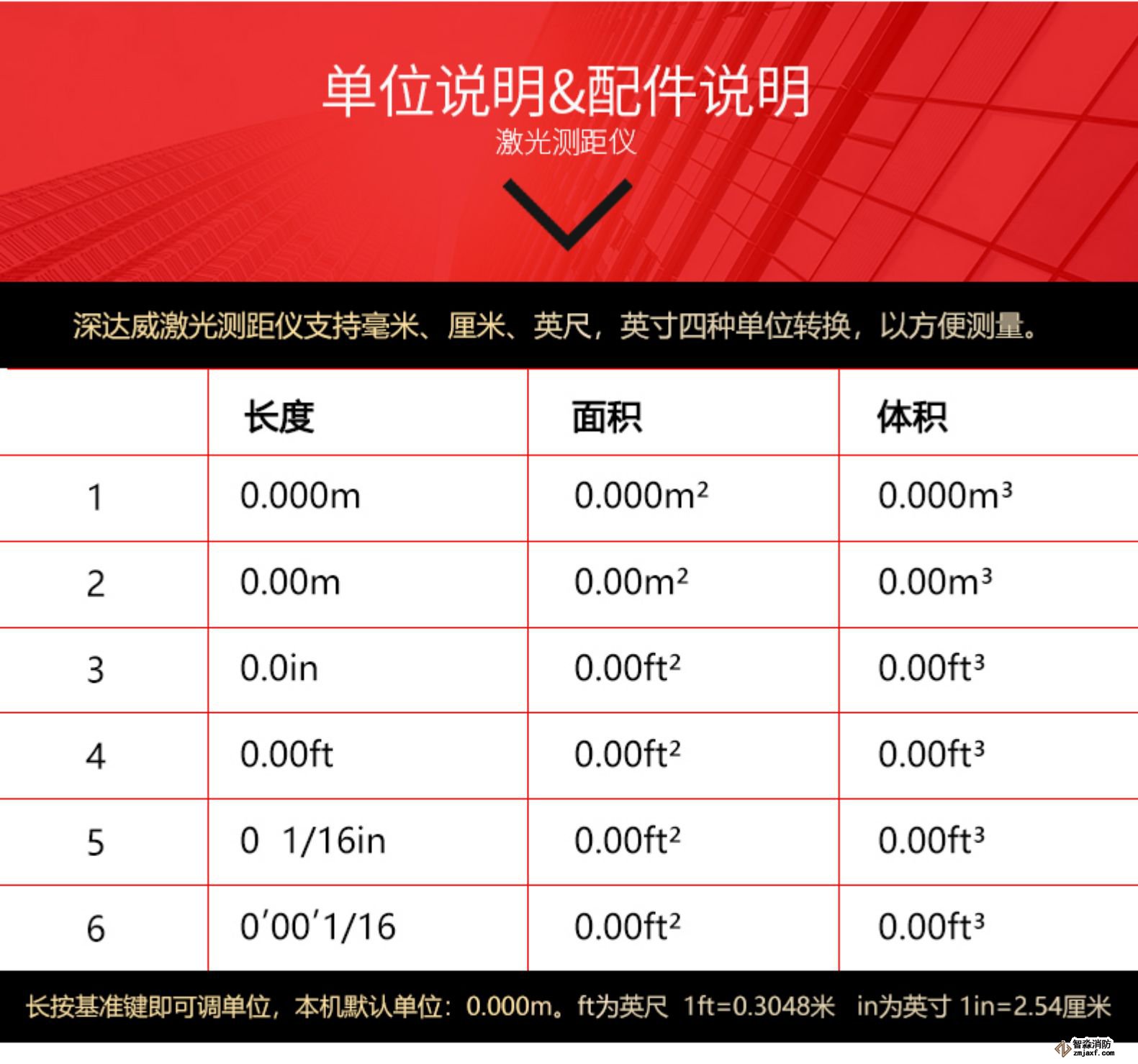 激光測距儀量程不小于50m;精度:3mm測量距離、面積、空間、體積
