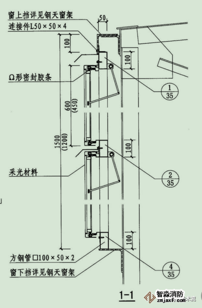 適用于工業建筑(廠房及倉庫)的縱向排煙天窗。