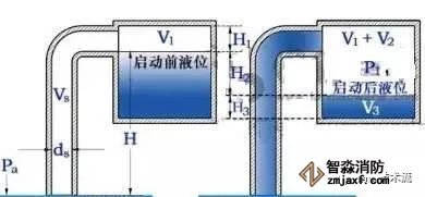 一些老舊建筑的改造,受面積或位置原因導致消防水泵不能實現自灌式吸水,比如消防水泵只能安裝在消防水池的上蓋,此時水泵的吸水管只能向下伸入水池的水位中,造成吸水管一段管道無水,這種情況消防水泵在啟動時不能吸上水,而這樣的例子并不少見,以下介紹的真空罐(也稱負壓罐)是解決這個問題的一種方式。