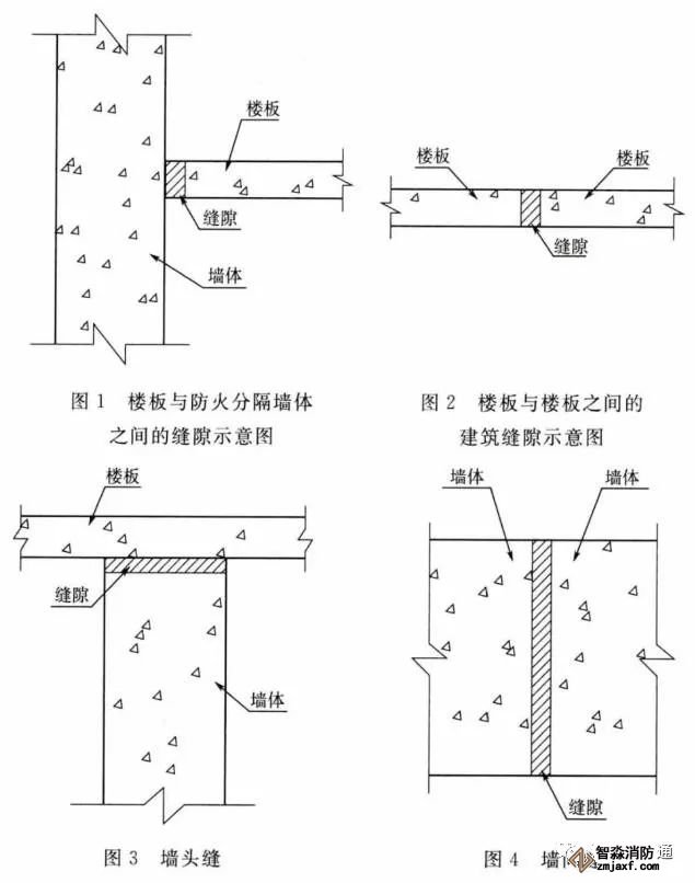 2.0.2 建筑結(jié)構(gòu)或構(gòu)件之間的縫隙包括防火隔墻之間的縫隙、防火隔墻與樓板之間的縫隙、建筑幕墻與樓板之間的縫隙等,還包括伸縮縫、沉降縫、抗震縫等建筑變形縫隙。