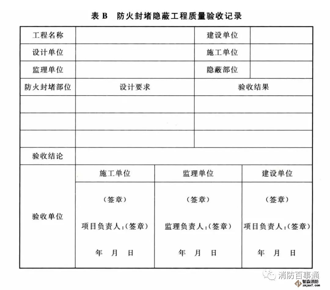 附錄B 防火封堵隱蔽工程質(zhì)量驗(yàn)收記錄