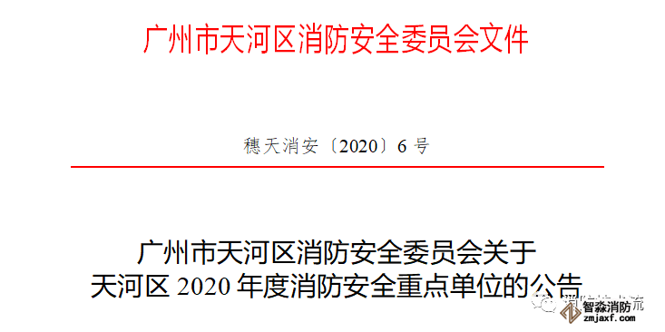 根據《中華人民共和國消防法》、公安部《機關、團體、企業、事業單位消防安全管理規定》(公安部第61號令)、《消防監督檢查規定》(公安部第120號令)、《廣東省實施<中華人民共和國消防法>辦法》、《廣東省消防安全重點單位管理規定》、《廣東省火災高危單位消防安全管理規定》和《廣東省消防安全重點單位消防監督管理工作細則》及《廣州市消防安全委員會關于廣州市2020年度消防安全重點單位和火災高危單位的公告》(穗消安〔2020〕2號)內容,結合我區消防工作實際,我區轄內被確定為市管消防安全重點單位共58家(具體見附件1,其中55家為火災高危單位),被確定為區管消防安全重點單位共270家(具體附件2),現一并予以公告。為加強對消防安全重點單位和火災高危單位的管理,特提出如下要求,請各單位嚴格執行: