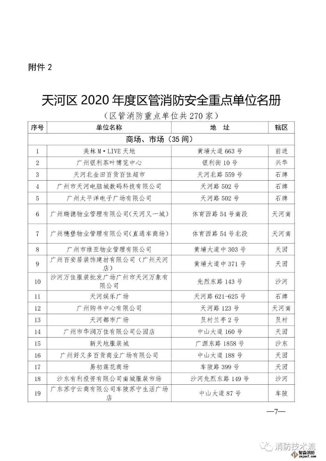 附件:1.天河區2020年度市管消防安全重點單位名冊