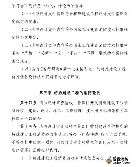(三)消防設計文件符合國家工程建設消防技術標準(具有本規定第十七條情形之一的特殊建設工程,特殊消防設計技術資料通過專家評審)。