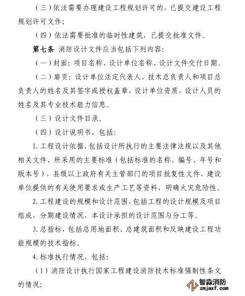 ?。ㄒ唬┌凑战ㄔO工程法律法規和國家工程建設消防技術標準進行設計,編制符合要求的消防設計文件,不得違反國家工程建設消防技術標準強制性條文;