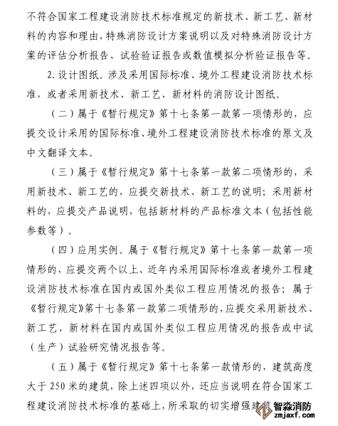 (二)消防設計文件擬采用的新技術、新工藝、新材料不符合國家工程建設消防技術標準規定的?!?/span>