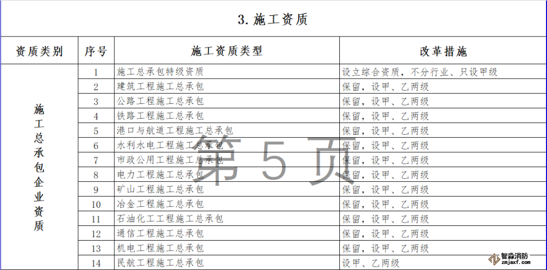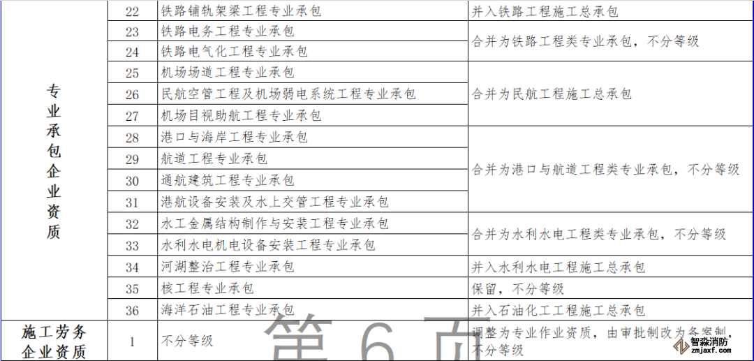 消防設施施工專業承包資質和其他幾項資質合并為通用類專業承包,不分等級。