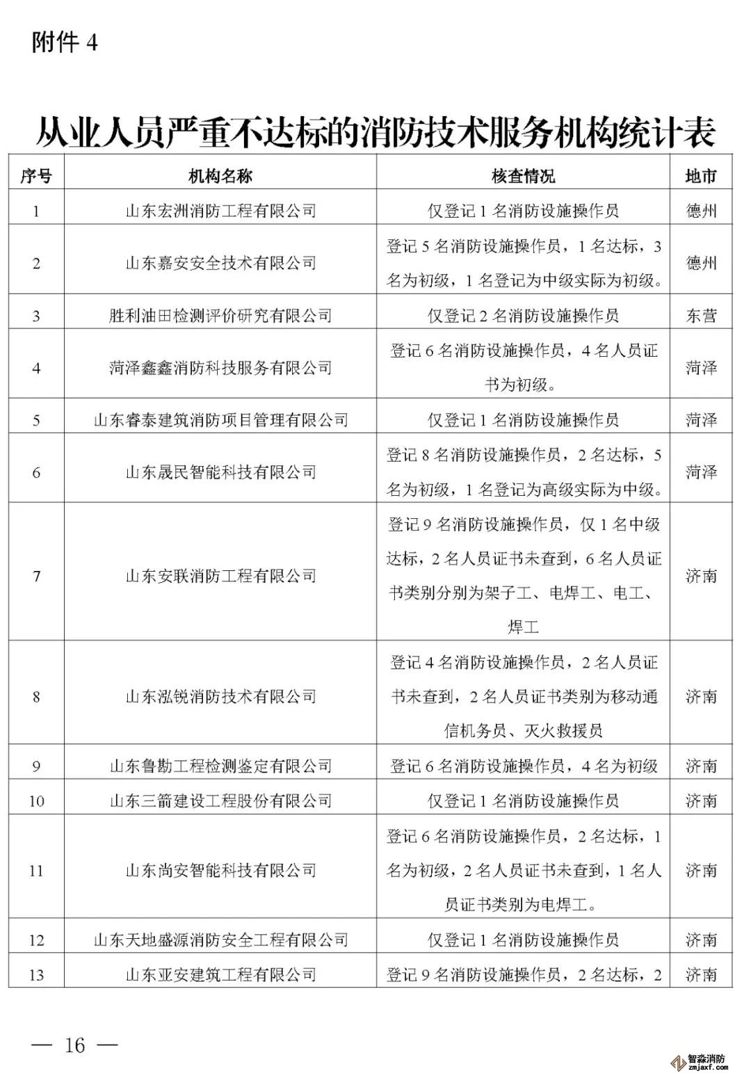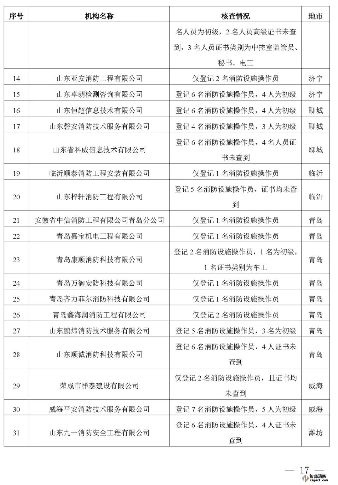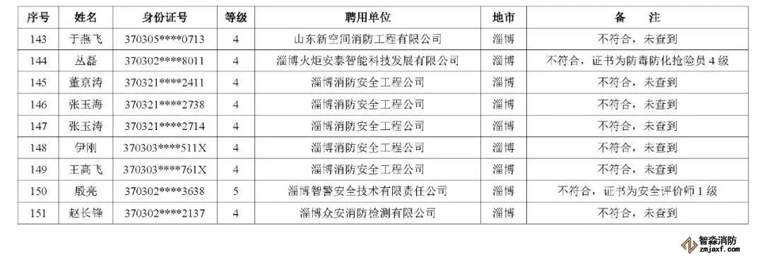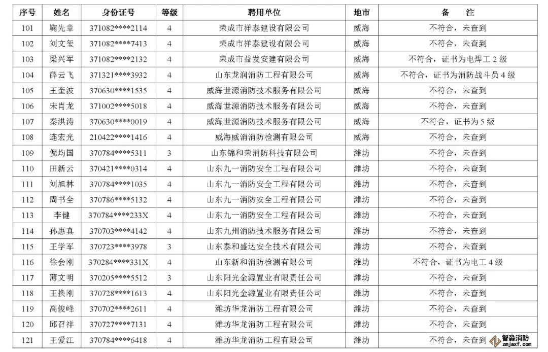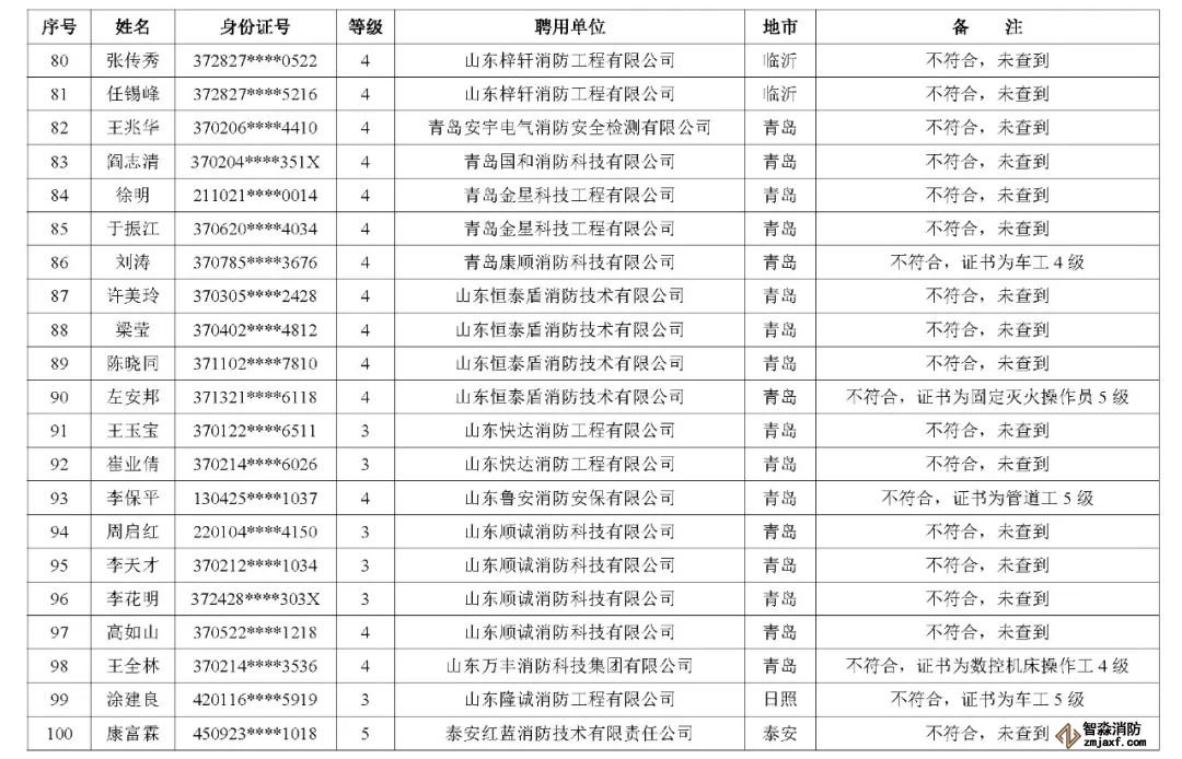 近日,山東省消防救援總隊辦公室通報了對消防技術服務機構從業人員資格核查情況: