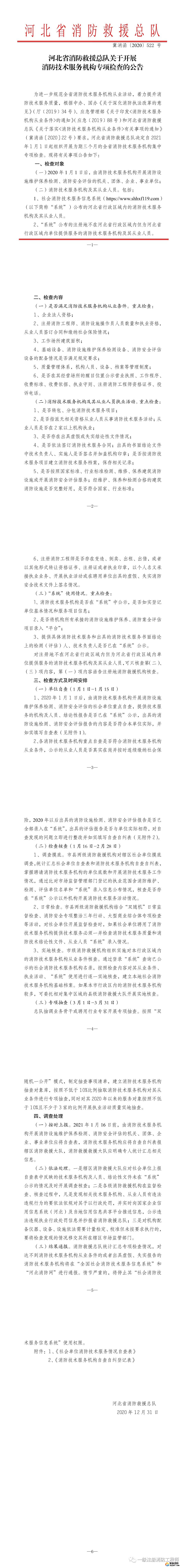 【河北省消防總隊】1月16日-2月28日開展消防技術服務機構專項檢查